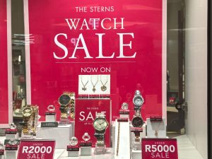 Sterns at Kenilworth Centre knocks down wrist watch prices Leave a Comment on Sterns at Kenilworth Centre knocks down wrist watch prices Posted in Fashion, Jewelery Share: XFacebookPinterestLinkedin Jewellery sale currently on at Sterns Kenilworth Centre Author:
